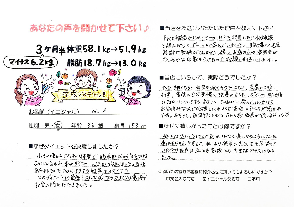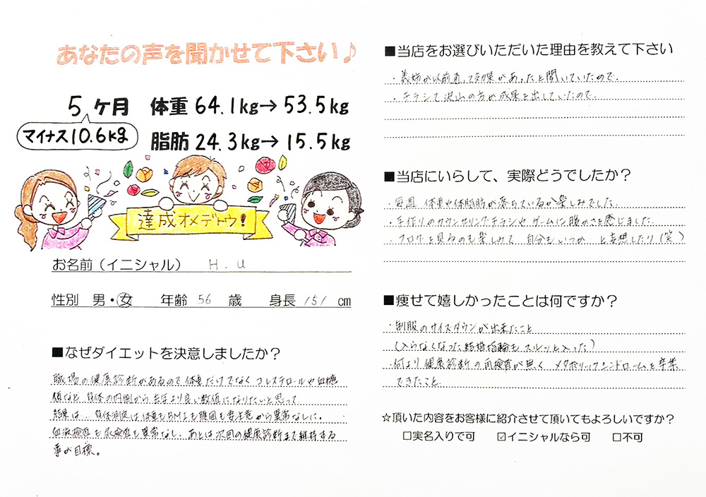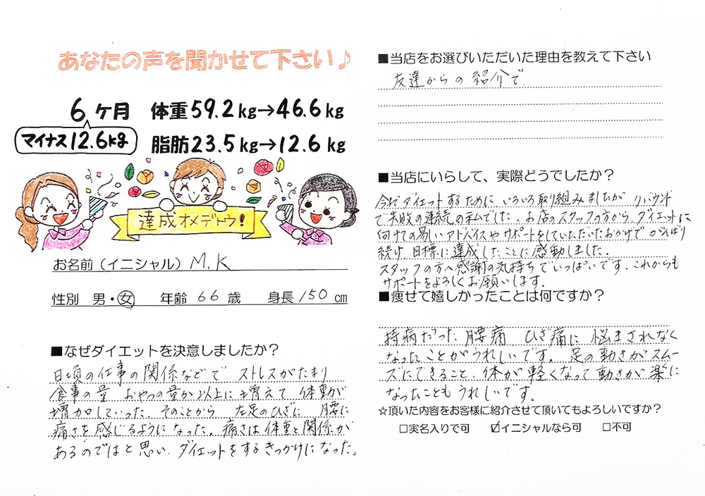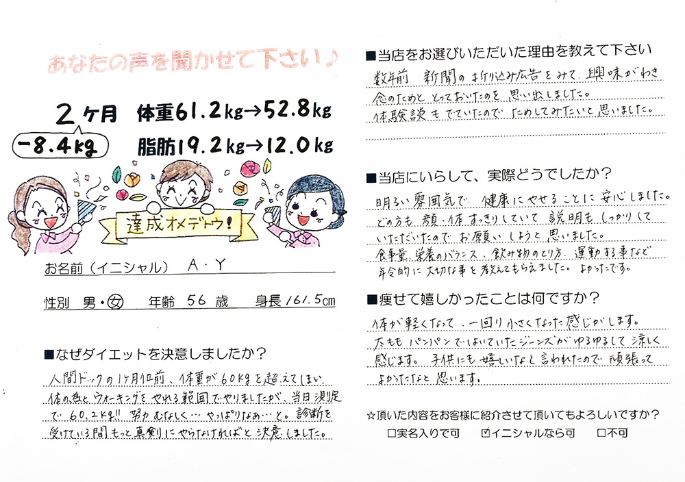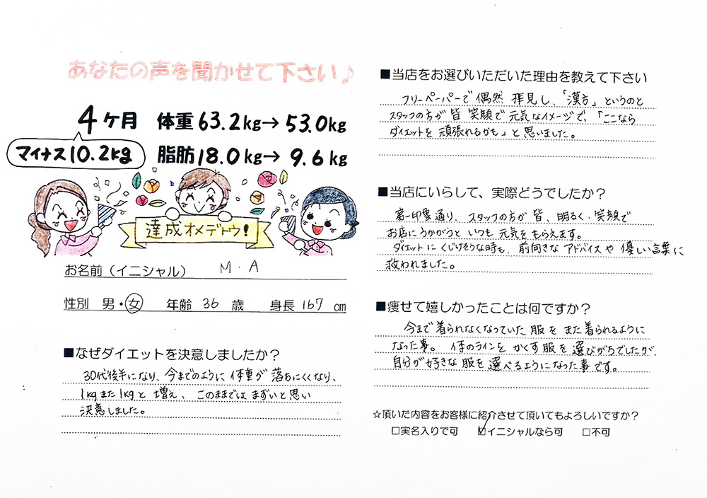 寺岡薬局の漢方ダイエットを体験されて、目標を達成した方のビフォーアフターとお声をいただきました。